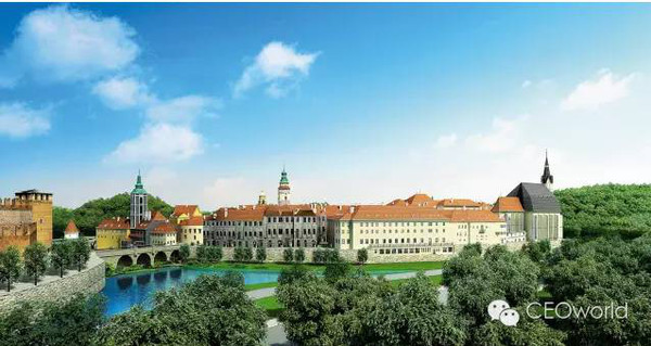 參考捷克小鎮(zhèn)克倫諾夫的城堡、教堂、修道院等大型建筑的建筑.色,整合蜿蜒曲折、壯麗秀美的河流,構(gòu)成尺度宜人的步行空間.