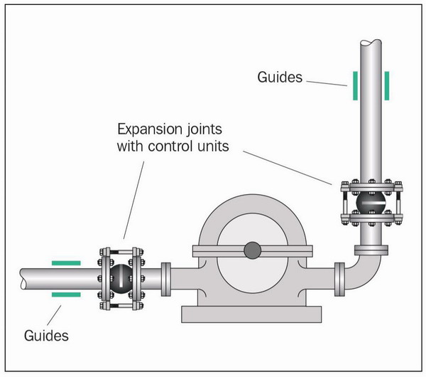 Pressure-restrained expansion joint on pump (with tie bar).