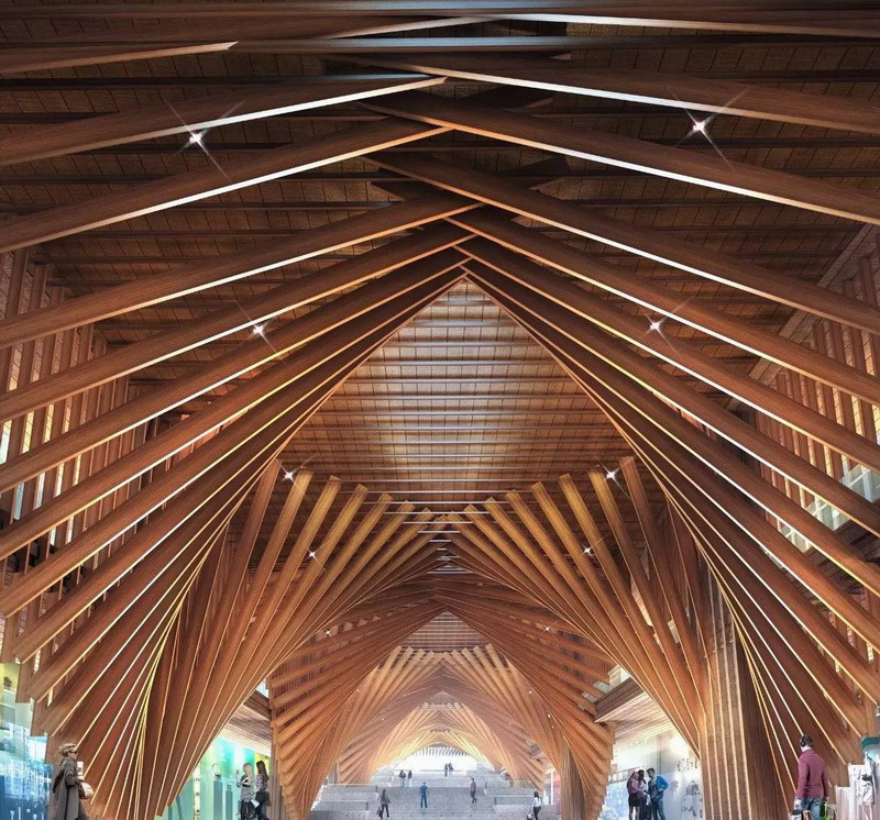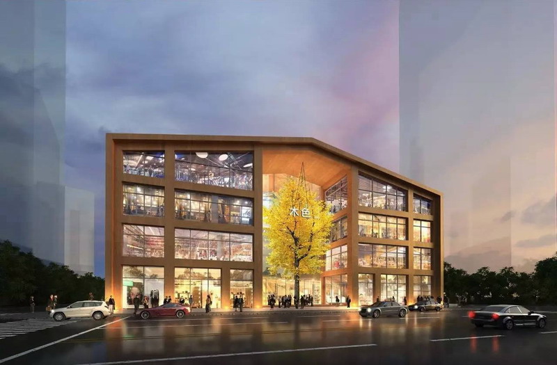 鏡頭拉近至“木色”全景,外立面舍棄傳統(tǒng)的玻璃幕墻或金屬外觀立面,而是由溫潤木質(zhì)感金屬打造整體外立面,視覺觸覺皆可感應(yīng)“木色”。