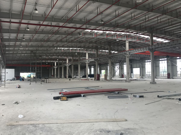 車間鋼構(gòu)部門防火涂料的施工也已經(jīng)完畢。