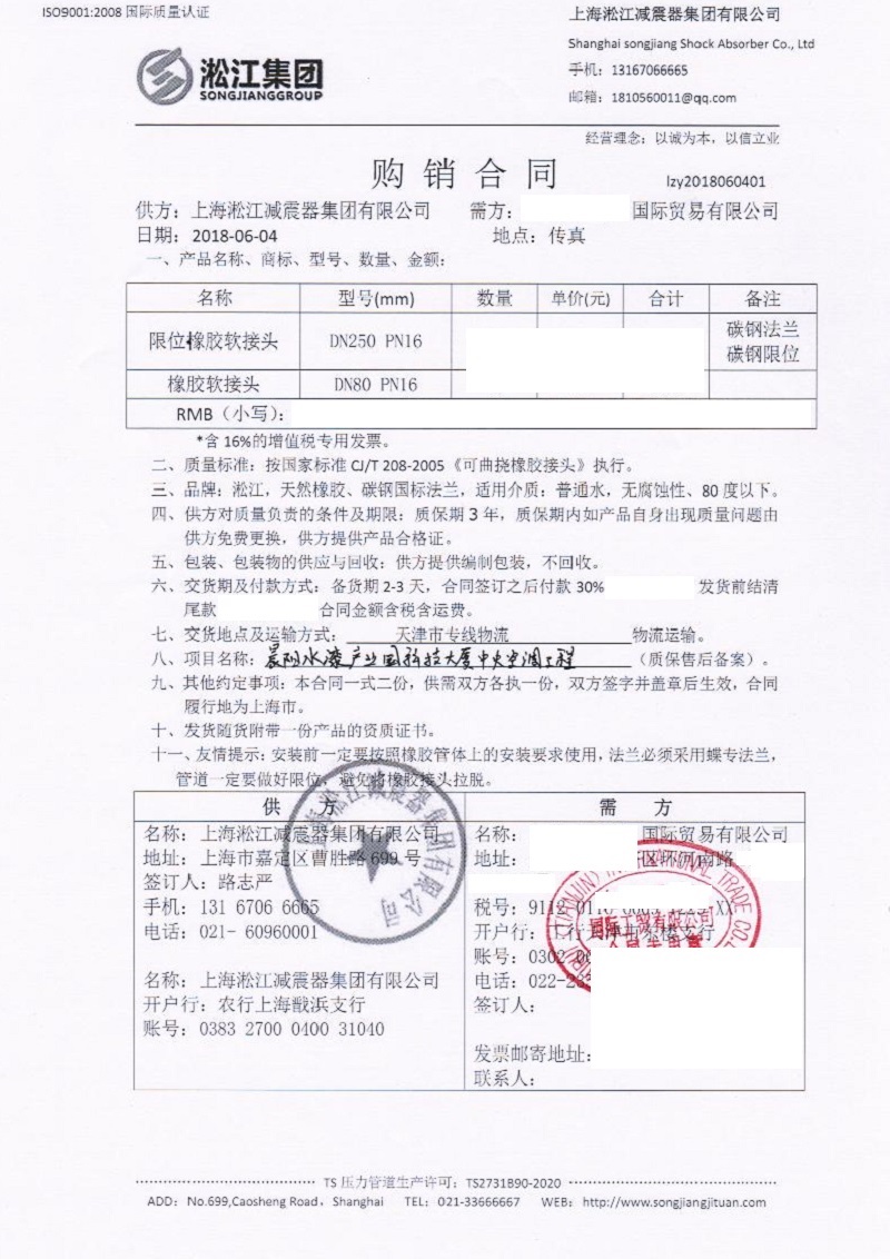上海淞江減震器集團(tuán)有限公司官方網(wǎng)站為您介紹:【河北晨陽水漆產(chǎn)業(yè)園科技大廈】橡膠接頭合同信息,淞江集團(tuán)為眾多水漆廠家提供橡膠接頭,本次主要用于中央空調(diào)的安裝,起到減震和降噪的作用。